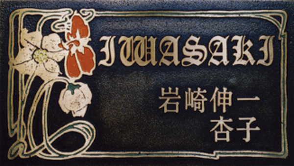 飾り罫と文字を彫刻したデザイン表札。素材:ラステンバーグサイズ:H83×W198×20mm