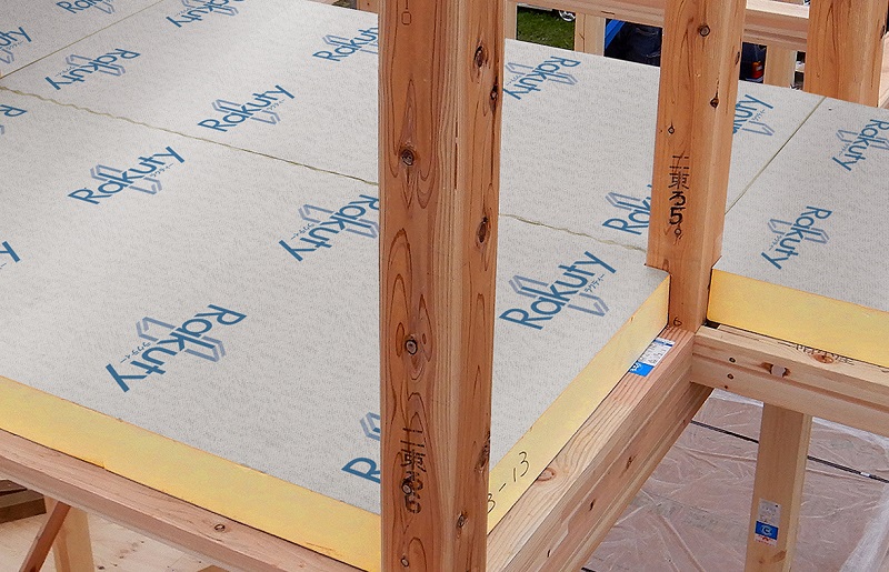プレカット図を基に束欠き加工がされた、ウレタン断熱ボードのため、上棟時に断熱施工が可能。