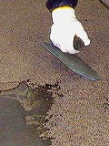 樹脂モルタル・ペーストモルタル兼用下地材。浮陸調整・下地補正に経済的。食品工場で好評な超低臭型。硅砂(別売)と混合して使用のこと。薄塗り補修も可能。