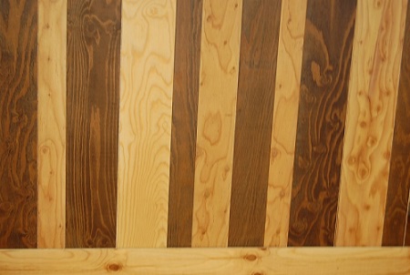 Aegis Wall(アイギスウォール)は天然木を使用した内装材料。難燃材料として建築基準法の難燃基準をクリアしている。木材の特長をそのまま生かしている。縦張り、横張り、並べ方、組み合わせは自由。