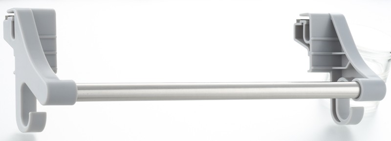 ライン取っ手に取付けるタオルハンガー。横からスライドさせるだけの簡単着脱。タオルのほかにミトン等も掛けられる。
