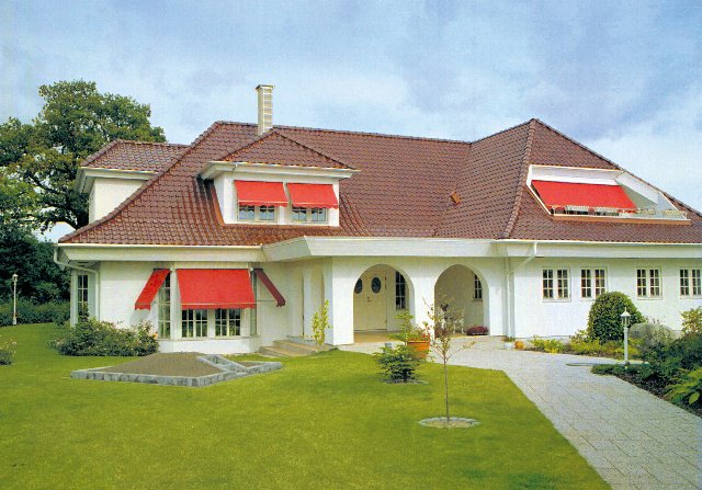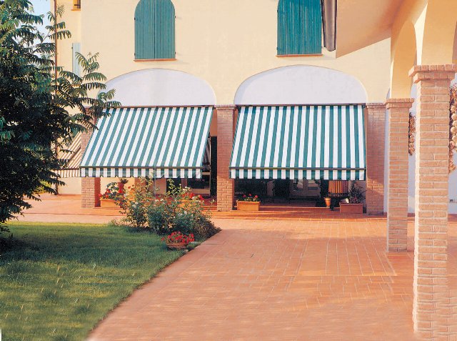 優美なイタリアンタイプ(手動のみ)とシャープなスウェーデンタイプ(手動・電動)は窓用のオーニング。キャンバスはイタリア・パラ社製アクリル生地を使用。30色の中から好みの色・柄を選ぶことができる。