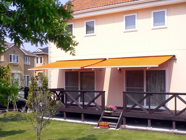 イタリアのキャンバスとフレームを使用。ベランダにもテラスにも使える安価の普及型オーニング(手動・電動)。キャンバスはイタリア・パラ社製アクリル生地を使用。30色の中から好みの色・柄を選ぶことができる。