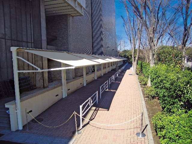 多目的利用に最適な5mの大型サイズの独立型ワイドオーニング(手動のみ)。開閉操作がワンタッチででき、風にも強い。キャンバスはイタリア・パラ社製アクリル生地を使用。30色の中から好みの色・柄を選べる。