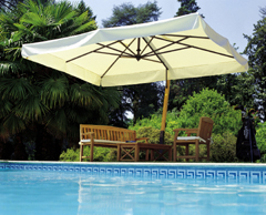 100年の歴史を持つイタリアの名門FIM社の最高傑作。リゾート、カフェ、レストランなど幅広い用途で使用できる大型パラソル7種類。