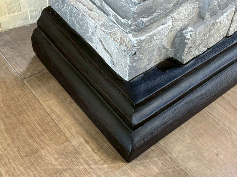 18インチ電気暖炉本体+暖炉棚のセット商品。石組み風の重厚なデザインのマントルピースに、LED電球の光で作り出す炎が本物そっくりに揺らめく。