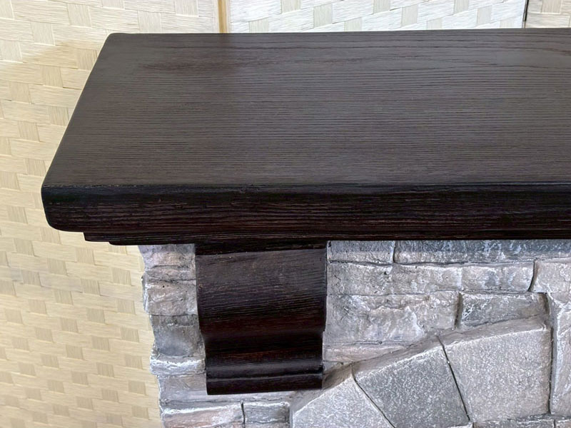 18インチ電気暖炉本体+暖炉棚のセット商品。石組み風の重厚なデザインのマントルピースに、LED電球の光で作り出す炎が本物そっくりに揺らめく。