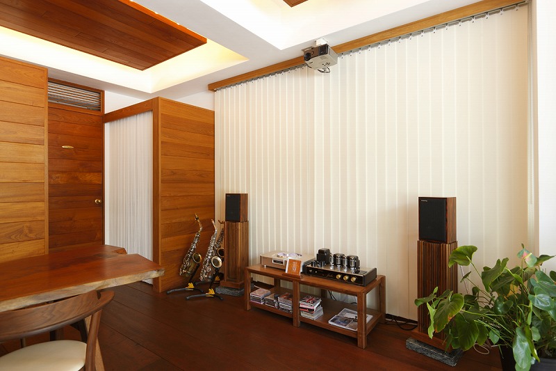 高性能吸音素材をスラットに使用したバーチカルブラインド。バーチカルブラインドとしての調光機能はもちろんのこと、室内反響音をカットし、インテリアに溶け込みながら音環境を改善する。