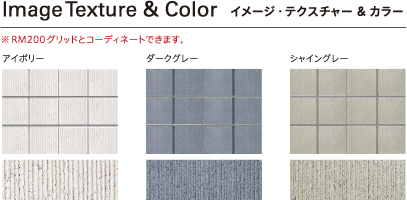 200 モデュールの格子が強調されたデザイン。素地部分の表面には細い溝(コルゲート模様)が施され、シャープでありながらグリッド特有の落ち着きを持ったブロックである。