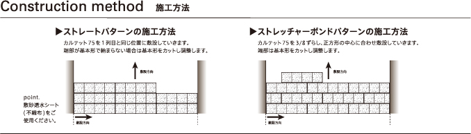 75×300サイズのインターロッキングブロックに化粧目地を施し、ピンコロ敷の風合いを再現。