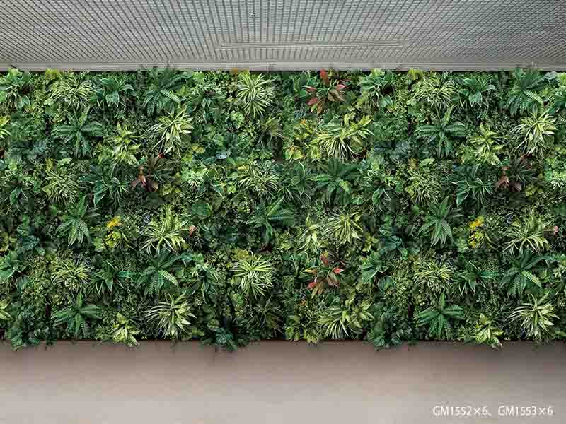 連接グリーンと組み合わせグリーンからなる、グリーンパネル。インパクトのある演出ができて、癒しの効果が最大限に発揮できる。サインやインテリア素材の組み合わせでイメージアップやおもてなし空間が作れる。
