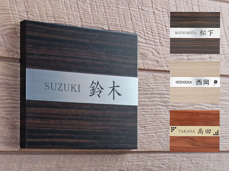 オリジナルカジュアルデザインのアルミ鋳造表札。色:ブラック・ヘアライン加工。サイズ:H65×W215×7