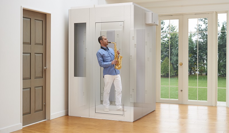移設可能な防音室。広さ9種類(0.8畳~4.3畳)、高さ2種類、遮音性能(Dr-35・Dr-40)から選択可能。他に、部屋の形状に合わせた自由設計(フリーシリーズ)もあり。