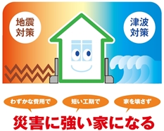 住宅の外側から設置する、後付けホ ールダウン金物「かぞくまもる」は、基礎・柱を緊結することで「ホゾ抜け」や「分離」を防止し、地震・津波などの災害から家屋・ 家族を守る。