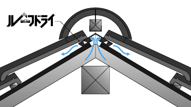 ルーフドライは圧倒的な掃気量で熱気を排出し温度を外気に近付ける。瓦のデザインを壊すことなく、小屋裏の換気を行う。また、常に木材は乾燥状態になるためカビの発生を抑えることができる。