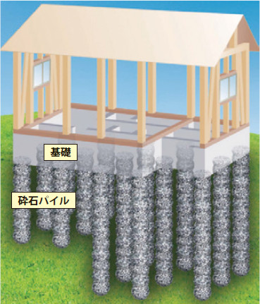 HySPEED(ハイスピード)工法は、砕石パイルをその地盤に合うように確実な施工で1本ずつ造り上げ、砕石パイルと原地盤の支持力を複合させて、地盤の支持力を高める地盤改良工法である。