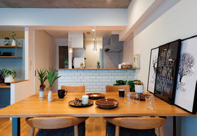 独立していた洋室とリビングの間の壁を取り払い、広々と明るいリビングダイニングに変身。