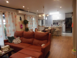 リフォーム時に壁・床・天井の断熱材を更新 し、窓サッシ交換等の開口部断熱をしたため、冬場は室内がかなり暖かくなり、広々としたリビングもエアコン1台で十分に暖房ができるようになりました。二重サッシにした部屋は外の雨音も聞こえないくらい静かになったということです。工事完了後に、ご長男ご一家が新築工事をすることになったため、家が建つまで3人が同居することになりましたが、広いLDKと使い勝手の良い間取りになったことで、窮屈な思いをすることなく楽しくお過ごしになられたようです。