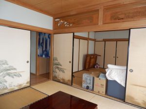 南向きで明るく広いが物置になっていた2間続きの和室(客間)