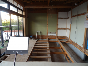 お孫さんが増え、家族の集まるリビングが手狭になったのと、水回りの老朽化が気になっていたことで相談を受けました。施主様も最初は水回りと、部屋のクロスを貼り替える程度の気持ちでしたが、現場調査で南側の広い客間をほとんど使っていないのに、リビングは北側に押しやられて寒く暗いことが分かり、南の客間をリビングに改装する等の全体的な間取り変更を提案することになりました。画期的に暮らしが変わることが図面でも施主様に理解していただけたので、1階部分のフルリノベーションと同時に耐震性と省エネ性を高めるリフォームに長期優良住宅化リフォーム補助金が出ることを説明しました。使い勝手が良くなるだけのリフォームではなく、家の耐久性と省エネ性を向上させて次世代につなぐ、全体的なリフォーム計画となりました。