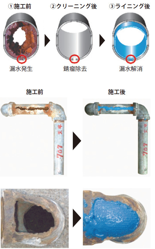 管の耐用年数は40年以上となり寿命を大幅に延ばすと同時に、地震や災害時の配管破損リスクを低減し、腐食や漏水を防ぐことができる。