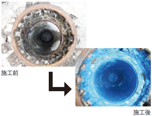 既存の排水管の内側にFRP(繊維強化プラスチック)をライニングする特許技術「FRPライニング」により、パイプ・イン・パイプ(内側に新たなパイプを成形すること)を実現。