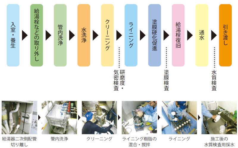 しかし、管内の温度変化が大きい給湯管に対しては有効なライニング技術はほとんど普及しておらず、配管を取り替える工事が主流となっている。