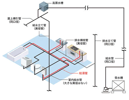築20年以上の集合住宅の給湯管には銅管が多く使用されている。
