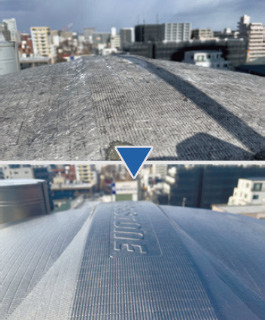 塗膜には、SUS316L(高耐食性ステンレス)フレークを鱗状に重ねた「ステンレスピグメント層」が形成され、光・空気・湿気の侵入を遮断し、加水分解の防止により、母材の劣化を効果的に抑制する。