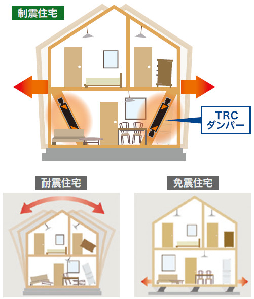 「TRCダンパー」は、最大で約50%水平変位を低減することができる制震システム。