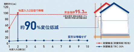 実物大の住宅を用いた実験により、1回の地震(震度6強相当)だけでなく、繰り返しの地震にも強いことが実証されている。